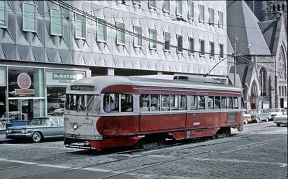 | Keywords: outdoor vehicle train A Roger Puta Photograph A Roger Puta Photograph <b>A Roger Puta Photograph</b> PAAC PCC 1658, a -40 MT. WASHINGTON car on Grant St. at 6th Ave in downtown Pittsburgh, PA on June 27, 1965. (26159770104).jpg en <b>A Roger Puta Photograph</b> 2016-05-01 22 15 57 https //www flickr com/people/129679309 N05 railfan 44 https //www flickr com/photos/129679309 N05/26159770104/ User Fæ/Flickr API Puta's Rail Mass Transit Photographs Trains and Trolleys Trams/Streetcars PCC tram/streetcar/trolley Streetcars and Light Rail in North America Trains and Railroads of Pennsylvania Pittsburgh Rails North American Rail Transit Mel Finzer RogerPuta Photographs by Roger Puta Photos uploaded from Flickr by Fæ using a script Streetcars in Pittsburgh in the 1960s |