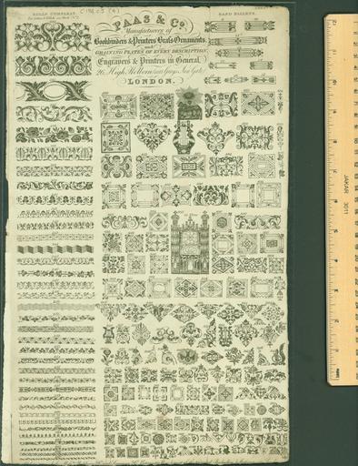 Keywords: Paas & Co. manufacturers of bookbinders & printers' brass ornaments, and graining plates of every description, engravers & printers in general, ...-Paas & Co. -London, 1827?- - Paas bookbinding tools (C194c5 sheet 4).jpg Style Pictorial; Caption Paas bookbinding tools; Colour White; Edge Unspecified exhibition history Decorative Technique Printed/other transfer process; Cover Material Paper printed Unspecified object history Text 1827; London; Unspecified object type Cc-zero place of creation Binding England place of discovery Bookbinders' finishing tool makers 1780-1965 / by Tom Conroy New Castle Del Oak Knoll Press ; Nottingham Plough Press c2002 engravers printers in general Paas Co London 1827 engravers printers in general Paas Co London 1827 - Paas bookbinding tools C194c5 sheet 4 http //www webarchive org uk/bldatasets/bindings/2015-06-16-15-36-11-01 jpg Bookbinding 18th-century bookbinding British Library Bookbindings Paas & Co. manufacturers of bookbinders & printers' brass ornaments, and graining plates of every description, engravers & printers in general, ...-Paas & Co. -London, 1827?- - Paas bookbinding tools (C194c5 sheet 4).jpg Style Pictorial; Caption Paas bookbinding tools; Colour White; Edge Unspecified exhibition history Decorative Technique Printed/other transfer process; Cover Material Paper printed Unspecified object history Text 1827; London; Unspecified object type Cc-zero place of creation Binding England place of discovery Bookbinders' finishing tool makers 1780-1965 / by Tom Conroy New Castle Del Oak Knoll Press ; Nottingham Plough Press c2002 engravers printers in general Paas Co London 1827 engravers printers in general Paas Co London 1827 - Paas bookbinding tools C194c5 sheet 4 http //www webarchive org uk/bldatasets/bindings/2015-06-16-15-36-11-01 jpg Bookbinding 18th-century bookbinding British Library Bookbindings |