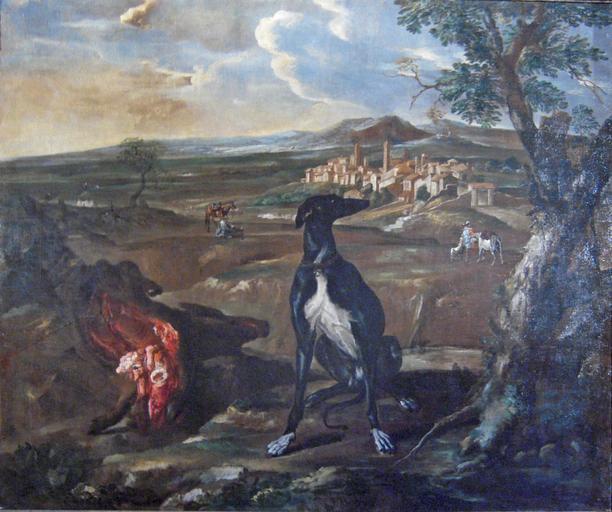 Keywords: Pace Ariccia GH at Campagnano.jpg Artwork creator Michele Pace del Campidoglio Greyhound and the manor of Campagnano 1658-1660 oil Palazzo Chigi Ariccia own Henry Townsend Photo PD-old-100-1923 Greyhounds in art in landscapes Greyhounds in art alone Palazzo Chigi Ariccia Ariccia in art 1658 17th-century greyhounds in art Michele Pace del Campidoglio |