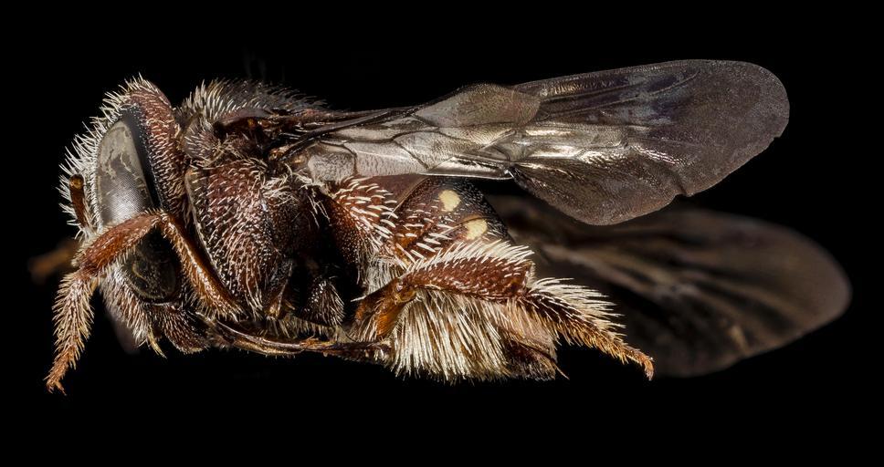 | Keywords: bee bees athidiini megachillidae africa red and yellow redandyellow taxonomy:genus=pachyanthidium pachyanthidium pachyanthidium aff benguene pachyanthidiumaffbenguene droege biml usgs usgsbiml sputnik animal black background photo border macro surreal texture A bee with great form. The shot of this from Africa from the back reminds me of sputnik. As in all the anthidiini it is a wonderful combination of deep pits and tastefully arrayed colors. I think such designs would look great as warrior outerwear. ~~~~~~~~~~{{{{{{0}}}}}}~~~~~~~~~~ All photographs are public domain, feel free to download and use as you wish. Photography Information: Canon Mark II 5D, Zerene Stacker, Stackshot Sled, 65mm Canon MP-E 1-5X macro lens, Twin Macro Flash in Styrofoam Cooler, F5.0, ISO 100, Shutter Speed 200 The murmuring of bees has ceased; But murmuring of some Posterior, prophetic, Has simultaneous come,-- The lower metres of the year, When nature's laugh is done,-- The Revelations of the book Whose Genesis is June. -Emily Dickinson Want some Useful Links to the Techniques We Use? Well now here you go Citizen: Basic USGSBIML set up: www.youtube.com/watch?v=S-_yvIsucOY USGSBIML Photoshopping Technique: Note that we now have added using the burn tool at 50% opacity set to shadows to clean up the halos that bleed into the black background from "hot" color sections of the picture. www.youtube.com/watch?v=Bdmx_8zqvN4 PDF of Basic USGSBIML Photography Set Up: ftp://ftpext.usgs.gov/pub/er/md/laurel/Droege/How%20to%20Take%20MacroPhotographs%20of%20Insects%20BIML%20Lab2.pdf Google Hangout Demonstration of Techniques: plus.google.com/events/c5569losvskrv2nu606ltof8odo or www.youtube.com/watch?v=4c15neFttoU Excellent Technical Form on Stacking: www.photomacrography.net/ Contact information: Sam Droege sdroege@usgs.gov 301 497 5840 A bee with great form. The shot of this from Africa from the back reminds me of sputnik. As in all the anthidiini it is a wonderful combination of deep pits and tastefully arrayed colors. I think such designs would look great as warrior outerwear. ~~~~~~~~~~{{{{{{0}}}}}}~~~~~~~~~~ All photographs are public domain, feel free to download and use as you wish. Photography Information: Canon Mark II 5D, Zerene Stacker, Stackshot Sled, 65mm Canon MP-E 1-5X macro lens, Twin Macro Flash in Styrofoam Cooler, F5.0, ISO 100, Shutter Speed 200 The murmuring of bees has ceased; But murmuring of some Posterior, prophetic, Has simultaneous come,-- The lower metres of the year, When nature's laugh is done,-- The Revelations of the book Whose Genesis is June. -Emily Dickinson Want some Useful Links to the Techniques We Use? Well now here you go Citizen: Basic USGSBIML set up: www.youtube.com/watch?v=S-_yvIsucOY USGSBIML Photoshopping Technique: Note that we now have added using the burn tool at 50% opacity set to shadows to clean up the halos that bleed into the black background from "hot" color sections of the picture. www.youtube.com/watch?v=Bdmx_8zqvN4 PDF of Basic USGSBIML Photography Set Up: ftp://ftpext.usgs.gov/pub/er/md/laurel/Droege/How%20to%20Take%20MacroPhotographs%20of%20Insects%20BIML%20Lab2.pdf Google Hangout Demonstration of Techniques: plus.google.com/events/c5569losvskrv2nu606ltof8odo or www.youtube.com/watch?v=4c15neFttoU Excellent Technical Form on Stacking: www.photomacrography.net/ Contact information: Sam Droege sdroege@usgs.gov 301 497 5840 |