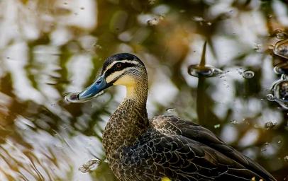 Keywords: pacific blue duck duck water swimming bird black brown feathers wild queensland australia