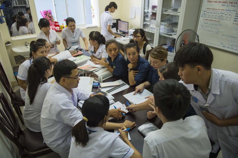 | Keywords: Pacific Partnership 160721-N-BB534-208.jpg en 160721-N-BB534-208 DA NANG Vietnam July 21 2016 Hospital staff at Da Nang Orthopedics and Rehabilitation Hospital confer with nutritionists assigned to hospital ship USNS Mercy T-AH 19 and Project Hope volunteers about ways to improve nutrition for patients Members of Pacific Partnership 2016 visited the hospital for a subject matter expert exchange where they discussed nutritional management for patients recovering from surgery Mercy is joined in Da Nang by JS Shimokita LST-4002 and Vietnam People's Navy ship Khánh Hóa for Pacific Partnership Partner nations are working work side-by-side with local organizations to conduct cooperative health engagements community relation events and subject matter expert exchanges to better prepare for natural disaster or crisis U S Navy photo by Mass Communication Specialist 1st Class Elizabeth Merriam/Released <br>Unit Defense Imagery Management Operations Center 2016-07-21 Petty Officer 1st Class Elizabeth Merriam https //www dvidshub net/image/2741875/pacific-partnership 160721-N-BB534-208 2016-07-25 06 43 DA NANG VN PD-USGov-Military-Navy USNS Mercy T-AH-19 Pacific Partnership 2016 Images from DoD uploaded by Fæ |
