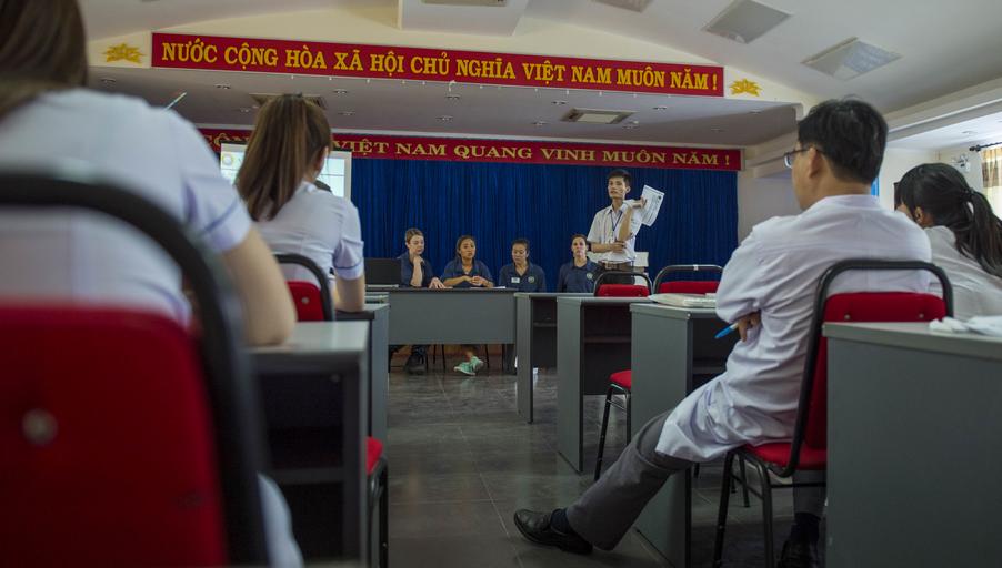 | Keywords: Pacific Partnership 160721-N-BB534-393.jpg en 160721-N-BB534-393 DA NANG Vietnam July 21 2016 Lt j g Naomi Harless left a dietician assigned to USNS Mercy T-AH 19 Michelle Tom a registered dietician with Project Hope Tiffany Loo a registered nurse with Project Hope and Lt Rebekah Kopesky a registered nurse assigned to Mercy present training about nutrition's effect on healing to hospital staff at Da Nang Orthopedics and Rehabilitation Hospital Members of Pacific Partnership 2016 visited the hospital for a subject matter expert exchange where they discussed nutritional management for patients recovering from surgery Mercy is joined in Da Nang by JS Shimokita LST-4002 and Vietnam People's Navy ship Khánh Hóa for Pacific Partnership Partner nations are working work side-by-side with local organizations to conduct cooperative health engagements community relation events and subject matter expert exchanges to better prepare for natural disaster or crisis U S Navy photo by Mass Communication Specialist 1st Class Elizabeth Merriam/Released <br>Unit Defense Imagery Management Operations Center 2016-07-21 Petty Officer 1st Class Elizabeth Merriam https //www dvidshub net/image/2741880/pacific-partnership 160721-N-BB534-393 2016-07-25 06 43 DA NANG VN PD-USGov-Military-Navy USNS Mercy T-AH-19 Pacific Partnership 2016 Images from DoD uploaded by Fæ |