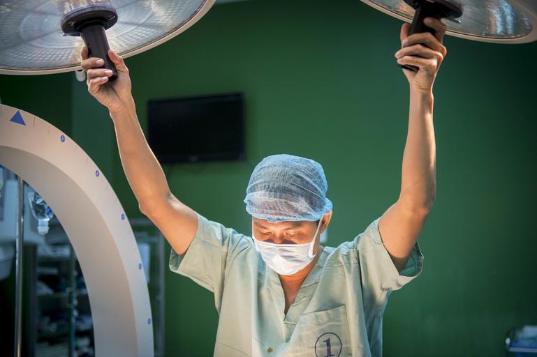 MAKE A MEME View Large Image Pacific Partnership 160722-N-BB534-409.jpg en 160722-N-BB534-409 DA NANG Vietnam July 22 2016 Dr Trung Kieu Huy Le a neurosurgeon at Da Nang General Hospital adjusts the lights before he performs surgery with the assistance of Lt Cmdr Paul ...