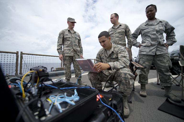 Keywords: Pacific Partnership 2013 130518-N-WD757-004.jpg en U S Air National Guardsmen test a satellite communications dish aboard the amphibious dock landing ship USS Pearl Harbor LSD 52 in the Pacific Ocean May 18 2013 during Pacific Partnership 2013 Pacific Partnership is an annual deployment of forces designed to strengthen maritime and humanitarian partnerships during disaster relief operations while providing humanitarian medical dental and engineering assistance to nations of the Pacific U S Navy photo by Mass Communication Specialist 3rd Class Carlos M Vazquez II/Released 2013-05-18 Petty Officer 3rd Class Carlos Vazquez II https //www dvidshub net/image/944169 130518-N-WD757-004 2013-05-31 05 24 USS PEARL HARBOR LSD 52 AT SEA PD-USGov-Military-Navy USS Pearl Harbor LSD-52 Pacific Partnership 2013 Images from DoD uploaded by Fæ |