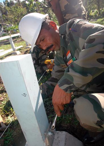 | Keywords: Pacific Partnership DVIDS54481.jpg en A soldier from the Indian army tightens a lug nut on the foundation for a hut being built during an engineering civic action program at the Sasamungga Hospital in support of the Pacific Partnership mission The Pacific Partnership team of non-governmental organizations and military personnel are conducting various medical dental and engineering assistance programs in the Solomon Islands during a six-day visit from amphibious assault ship USS Peleliu 2007-08-20 LHA 5 https //www dvidshub net/image/54481 070820-N-+++++-011 2007-08-24 10 22 SASAMUNGGA SB PD-USGov-Military-Navy USS Peleliu LHA-5 Images from DoD uploaded by Fæ |