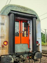 Keywords: package train railway last wagon pkp the station the vehicle hdr