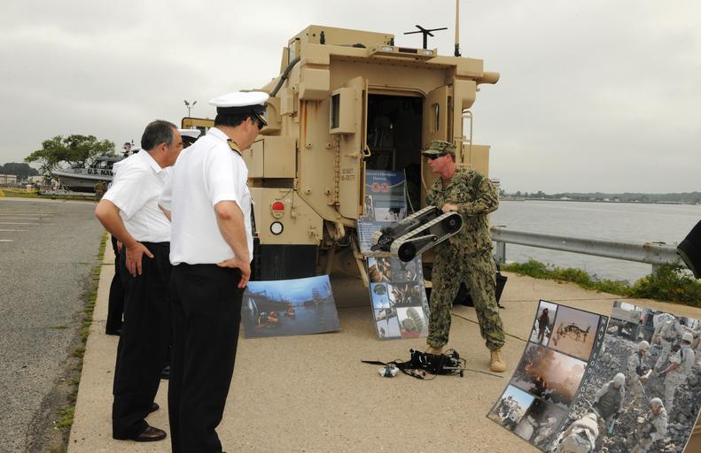| Keywords: PackBot transportable robotic system 120808-N-ZQ794-096.jpg  en Lt Ryan Blake attached to Explosive Ordnance Disposal Mobile Unit EODMU 2 displays a PackBot transportable robotic system to a members of the Chilean Naval War College during a tour of Navy Expeditionary Combat Command NECC at Joint Expeditionary Base Little Creek-Fort Story Aug 8 The purpose of the visit was to familiarize the tour participants with NECC capabilities and provide first-hand experience with expeditionary sailors and their equipment 2012-08-08 Seaman Kay Savarese https //www dvidshub net/image/642348 120808-N-ZQ794-096 2012-08-09 16 02 VIRGINIA BEACH VA US PD-USGov-Military-Navy Joint Expeditionary Base Little Creek-Fort Story PackBot Images from DoD uploaded by Fæ |