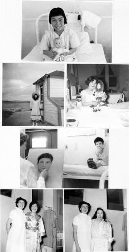 | Keywords: alberta edmonton charles camsell hospital charlescamsellhospital hospitals blackandwhite groupshot people monochrome indoor black and white 1. Mary Aniknik, Spence Bay, NWT. 2. Mary Porter at Cambridge Bay, 1956. 3. Mary Porter with Eskimo [Inuit] doll in hosptial, 1957. 4. George Hainault proudly sits for his portrait. 5. Mary Porter with ward aide Helen Tizya from Whitehorse, Yukon. 6. Helen Tizya taken with Laura Albert in hospital ward. From the Charles Camsell Hospital fonds, PR1991.0383/79. 1. Mary Aniknik, Spence Bay, NWT. 2. Mary Porter at Cambridge Bay, 1956. 3. Mary Porter with Eskimo [Inuit] doll in hosptial, 1957. 4. George Hainault proudly sits for his portrait. 5. Mary Porter with ward aide Helen Tizya from Whitehorse, Yukon. 6. Helen Tizya taken with Laura Albert in hospital ward. From the Charles Camsell Hospital fonds, PR1991.0383/79. |