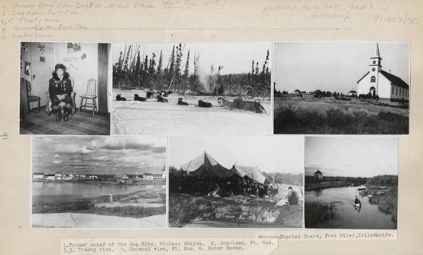 | Keywords: alberta edmonton charles camsell hospital charlescamsellhospital hospitals drawing photo border outdoor 1. Former chief of the Dogribs [Tlicho], Michal Sikyea. 2. Dog team, Fort Rae, NMT. 3. Treaty time. 4. General view, Fort Rae, NWT. 5. Treaty time. 6. Water scene. From the Charles Camsell Hospital fonds, PR1991.0383/383. 1. Former chief of the Dogribs [Tlicho], Michal Sikyea. 2. Dog team, Fort Rae, NMT. 3. Treaty time. 4. General view, Fort Rae, NWT. 5. Treaty time. 6. Water scene. From the Charles Camsell Hospital fonds, PR1991.0383/383. |