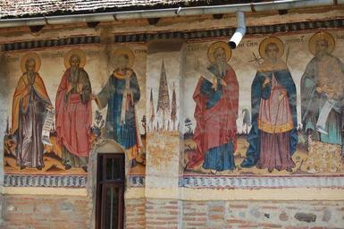 Keywords: Painted church exterior.JPG en Painted exterior of Olari the thatched Orthodox church in Curtea de Arges own Lawson Speedway 2007 Curtea de Argeș Romanian Orthodox churches in Argeș County Orthodox murals in Romania Murals and icons on the exterior of churches |