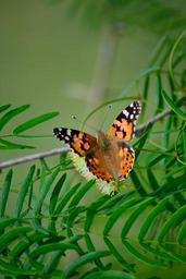 Keywords: painted lady butterfly resting in plant green