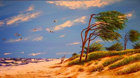 Keywords: painting acrylic by the sea beach water gulls baumflüchter clouds blue