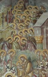 | Keywords: Paintings in the Church of the Theotokos Peribleptos of Ohrid 05.jpg mk Ф ески во Ц квата Св Бого одица Пе ивлепта во Ох ид en Frescos in the Church of the Theotokos Peribleptos Оhrid Macedonia ru Ф есок це кви Пе ивлепты Ох идской акедония http //sankire narod ru/PerOhrid html Пе ивлепта Ох идская century 14 AD Painters Michael and Ephtichius PD-Macedonia PD-Art Paintings in the Church of the Theotokos Peribleptos | ||||