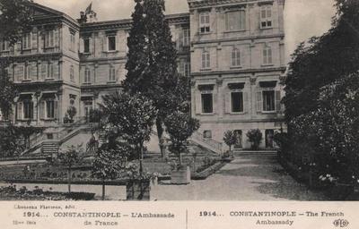 | Keywords: fransız sarayı fransızsarayı savary de brèves savarydebrèves pierre-léonard laurécisque pierreléonardlaurécisque laurécisque georges chadanne georgeschadanne st. louis kilisesi stlouiskilisesi pierre loti lisesi pierrelotilisesi fransız anadolu araştırmaları enstitüsü fransızanadoluaraştırmalarıenstitüsü ifea institut français d’études anatoliennes institutfrançaisd’étudesanatoliennes st. louis church stlouischurch pierre loti high school pierrelotihighschool salt araştırma saltaraştırma salt research saltresearch salt online saltonline palais de france i̇stanbul palaisdefranceistanbul outdoor road architecture building www.archives.saltresearch.org/R/-?func=dbin-jump-full&amp... Fransa’nın Osmanlı topraklarındaki ilk diplomatik temsilciliği olan Fransız Sarayı, Beyoğlu’nun Tophane yamacında yer alır. Sarayın bulunduğu arazi 16. yüzyılda, Savary de Brèves’in Fransa elçisi olduğu dönemde satın alındı. Arazide inşa edilen yapıların çoğu, bölgede çıkan yangınlarda zarar gördü. 1833’te yeni bir saray inşası gündeme geldi; projeyi mimar Pierre-Léonard Laurécisque hazırladı. İnşası 1847’de tamamlanan yapı, mimar Georges Chadanne’in yürüttüğü onarım çalışmasıyla 1913’te son hâlini aldı. Cumhuriyet döneminde elçiliklerin Ankara’ya taşınması sonucu siyasi özelliğini yitirdi. Günümüzde, konsolosluk mensupları tarafından konut olarak kullanılmakta; bahçesinde St. Louis Kilisesi’nin yanı sıra, Pierre Loti Lisesi’nin bir bölümü ve Fransız Anadolu Araştırmaları Enstitüsü bulunmaktadır. SALT Araştırma, Tahsin İspiroğlu Koleksiyonu www.archives.saltresearch.org/R/-?func=dbin-jump-full&amp... Fransa’nın Osmanlı topraklarındaki ilk diplomatik temsilciliği olan Fransız Sarayı, Beyoğlu’nun Tophane yamacında yer alır. Sarayın bulunduğu arazi 16. yüzyılda, Savary de Brèves’in Fransa elçisi olduğu dönemde satın alındı. Arazide inşa edilen yapıların çoğu, bölgede çıkan yangınlarda zarar gördü. 1833’te yeni bir saray inşası gündeme geldi; projeyi mimar Pierre-Léonard Laurécisque hazırladı. İnşası 1847’de tamamlanan yapı, mimar Georges Chadanne’in yürüttüğü onarım çalışmasıyla 1913’te son hâlini aldı. Cumhuriyet döneminde elçiliklerin Ankara’ya taşınması sonucu siyasi özelliğini yitirdi. Günümüzde, konsolosluk mensupları tarafından konut olarak kullanılmakta; bahçesinde St. Louis Kilisesi’nin yanı sıra, Pierre Loti Lisesi’nin bir bölümü ve Fransız Anadolu Araştırmaları Enstitüsü bulunmaktadır. SALT Araştırma, Tahsin İspiroğlu Koleksiyonu |