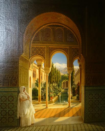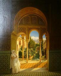 | Keywords: Palacia de Generalife and Patio de la Acequia, in the Alhambra, Granada, detail, by Wilhelm (Guillaume) Meyer, Granada, 1848 - Landesmuseum Württemberg - Stuttgart, Germany - DSC03286.jpg en Exhibit in the Landesmuseum Württemberg - Stuttgart Germany 2015-12-06 08 33 12 own Daderot other versions PD-old-100 cc-zero Palacio del Generalife by Wilhelm Meyer | ||||