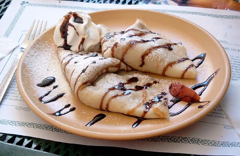 | Keywords: Palatschinke.jpg Originally uploaded in the German Wikipedia where it was uploaded by Karl Gruber who claimed it was PD and added this text User Karl Gruber/Credits <nowiki> Beschreibung Quelle und Lizenz Patschinke fotografiert 09/2005 in Bratislava gefüllt mit verschiedenen Marmeladen oder Nuss wie sie in Österreich Tschechien in der Slowakei oder in Ungarn serviert wird Lizenz Bild-PD </nowiki> de wikipedia Karl Gruber Pancakes of Slovakia Pancakes of Hungary Pancakes of Austria Folded pancakes Sweet food of Slovenia Brown plates Chocolate sauce |