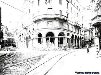 | Keywords: Ultimi ritocchi all'imponente palazzo Sciarini (arch. Aldo Scala e ing. Antonino Mazzoni) costruito all'imbocco di corso Roma (ora Aldo Moro) tra il 1930 e il 1933 in sostituzione dell'edificio occupato dal Ristorante Orologio. A sinistra via Magatti. varese corsoroma corsoaldomoro |