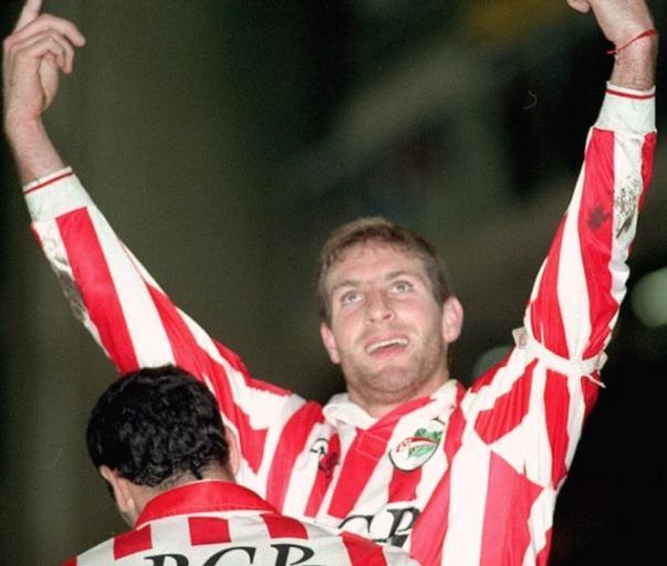 Keywords: Palermo - Estudiantes LP 1996.JPG es Martín Palermo festejando un gol ante Boca Juniors con la camiseta de Estudiantes de La Plata club en el que se inició profesionalmente y jugó entre 1992 y 1997 Own Carlos A Cermele 1996 PermissionOTRS 2009111810076787 Carlos A Cermele Martín Palermo 1996 in association football Red and white clothing male |