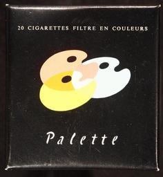 Keywords: Palette cigarettes pack, front.JPG Very old packaging of a product that is not produced and not sold any more own 2014-04-13 10 57 37 Alf van Beem CC-Zero Trademarked Palette cigarettes Cigarette packs