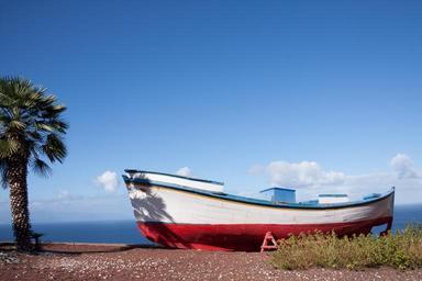 Keywords: palm boot fishing boat sea sky clouds blue relaxation travel tourism