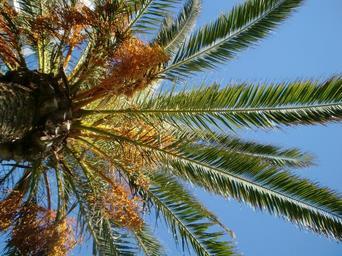 Keywords: palm sky blue palm fronds partly cloudy