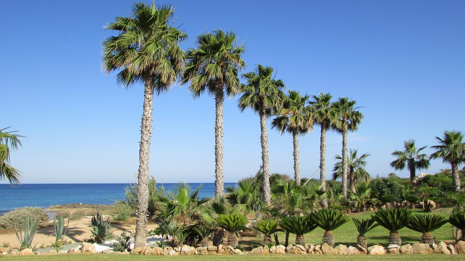 Keywords: palm tree sea sky green nature cyprus