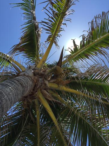 Keywords: palm tree tropical nature fronds blue sky clear day florida coast summer vacation travel scenic plant coconut green leaf landscape paradise sunny outdoor