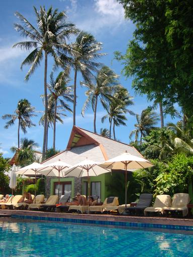 Keywords: palm trees pool water swimming pool hotel swim holiday blue recovery holidays wet fun bathing summer refresh rest relax hotel complex sky cooling