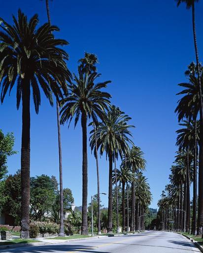 Keywords: palm trees street beverly hills bel air los angeles california city town urban cityscape tropical landscape road landmark usa