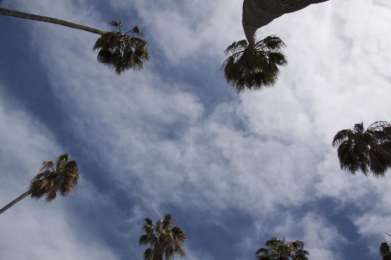 Keywords: palm trees tree silhouette blue sky low angle shot mediterranean sea holiday