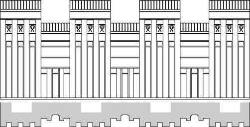 Keywords: Palotahomlokzat.svg en Palace facade reconstruction of 1st dynasty Based on drawing from cite book Kákosy László Varga Edith Egy évezred a Nílus völgyében Memphisz az Óbirodalom korában Hungarian 151 Budapest Gondolat 1970 a szócikkben készült saját rajz own HoremWeb 2009-08-21 Ancient Egyptian architecture