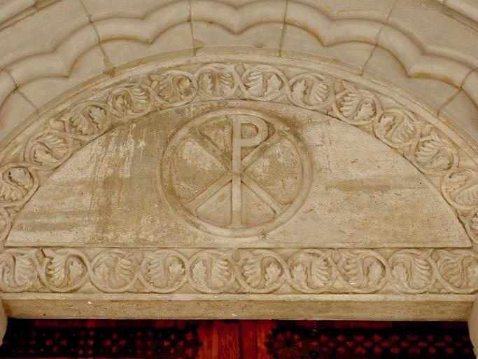 Keywords: Pamplona - El Salvador 24.jpg en Tímpano de la portada de la iglesia de El Salvador Pamplona Navarra España own Zarateman 2010-03-14 Church of El Salvador Pamplona Tympanums in Spain Chi Rho in Spain cc-zero