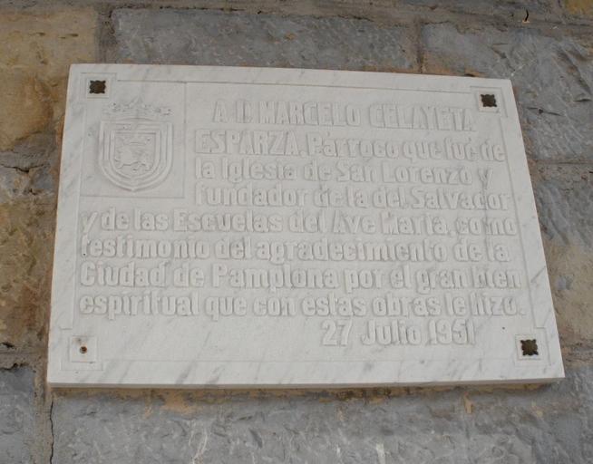 Keywords: Pamplona - El Salvador 25.jpg en Placa memorial en la iglesia de El Salvador de Pamplona Navarra España own Zarateman 2010-03-14 Church of El Salvador Pamplona Church plaques in Spain cc-zero
