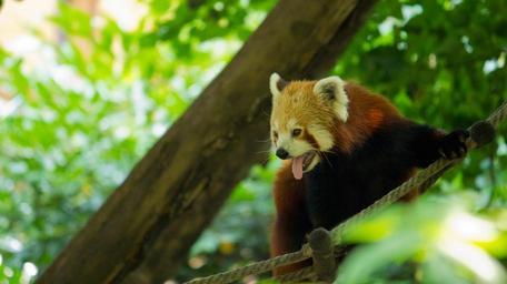 Keywords: panda tree cute zoo nature wildlife adorable wild animal forest giant trees red