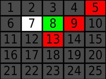 Keywords: Panel-quiz-25-gameplay-2.svg en Diagram of a sample game board on the Japanese quiz show Panel Quiz Attack 25 after Red makes a capture to take an opponent's box 2013-08-03 12 52 10 own RJaguar3 cc-zero Uploaded with UploadWizard Game shows