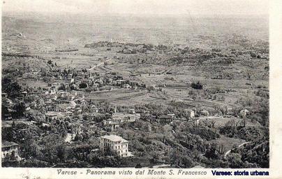 Keywords: Panorama ripreso dal Monte San Francesco sopra Velate. A sinistra Sant' Ambrogio Olona, si intravede tra fitti campi coltivati il rettifilo di viale Aguggiari. Dietro il selvoso colle Miogni si intravede il campanile di San Vittore. varese sambrogioolona |