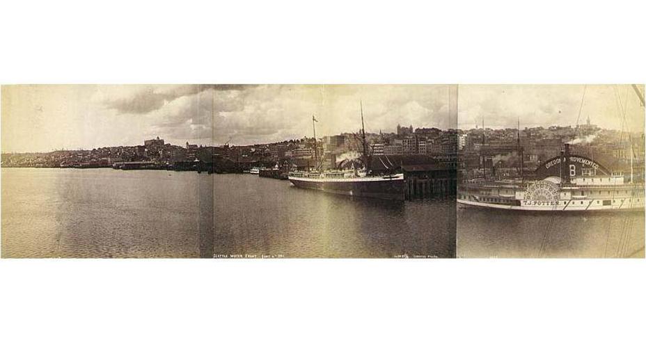 Keywords: Panorama of the waterfront north from Main St, Seattle, Washington, June 6, 1891 (LAROCHE 112).jpeg Photograph Creator Frank La Roche Caption on image Seattle water front June 6th 1891 3 part panorama La Roche 1001 La Roche 1001 1/2 La Roche 1001 3/4 Shows steamboat T J POTTER right at the Union Pacific dock or City dock foot of Main ; steamer WALLA WALLA center at the Ocean dock foot of Washington ; and the Oregon Improvement Company Subjects LCTGM Ships--Washington State --Seattle; Harbors--Washington State --Seattle; Waterfronts--Washington State --Seattle Subjects LCSH Seattle Wash ; T J Potter Ship ; Oregon Improvement Company; Photography panoramic--Washington State --Seattle depicted place Seattle Washington 1891 Institution University of Washington UWASH-LAROCHE-source accession number laroche 112 PD-old-auto-1923 1936 Information field Order Number LAR278 other versions Panorama of the waterfront north from Main St Seattle Washington June 6 1891 LAROCHE 345 jpeg Walla Walla ship 1881 T J Potter ship 1888 Ships in Elliott Bay Panoramics in Seattle Old Seattle skylines Downtown Seattle Washington Central Waterfront Seattle Washington Oregon Improvement Company piers Seattle 1891 in Seattle Black and white photographs ImageNote 1 200 187 35 23 906 500 2 Denny later Washington Hotel ImageNoteEnd 1 ImageNote 2 553 174 35 20 906 500 2 Rainier Hotel ImageNoteEnd 2 ImageNote 3 807 161 39 24 906 500 2 King County Courthouse ImageNoteEnd 3 |