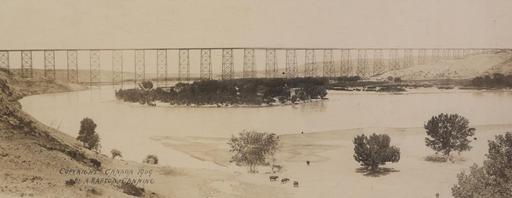 Keywords: Panoramic view of the Canadian Pacific Railway viaduct, at Lethbridge, Alberta. No. 1 (HS85-10-21151).jpg Panoramic view of the Canadian Pacific Railway viaduct at Lethbridge Alberta No 1 1909 Institution British Library object history credit line accession number HS85/10/21151 Picturing Canada image 21151 British Library image HS85/10/21151 http //www bl uk/manuscripts/FullDisplay aspx ref HS85/10/21151 PD-Canada-photo PD-1923 thumb left 300px Alternative version of this file Lethbridge Viaduct Picturing Canada images missing coordinates Photographs by Arthur Rafton-Canning 1909 in Alberta |