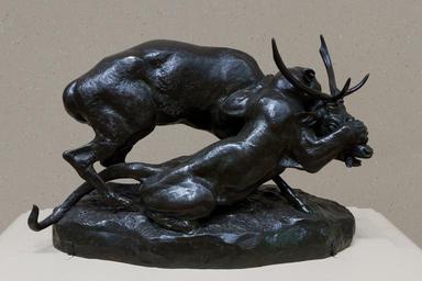 Keywords: Panther seizing a Stag - MET - 1981.241.jpg ca 1856 1875 bronze photo date 2012-07-18 PierreSelim self photographed photo license CC-Zero Wikimedia France - Wikimania 2012 Statues of animals QI by PierreSelim Animals facing right in art QualityImage Quality images supported by Wikimedia France |