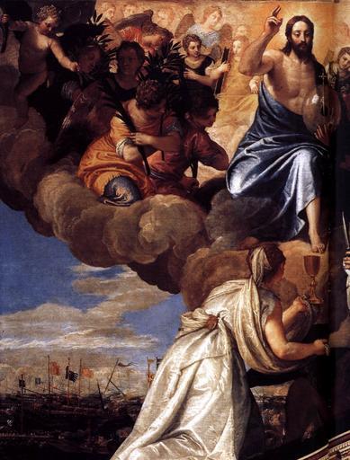 | Keywords: Paolo Veronese - Votive Portrait of Doge Sebastiano Venier (detail) - WGA24930.jpg Artwork Creator Paolo Veronese Votive Portrait of Doge Sebastiano Venier between 1581 1582 Oil on canvas size cm 285 565 entire painting Institution Palazzo Ducale Venice object history credit line accession number WGA link 24930 http //www wga hu/art/v/veronese/08/collegio/4wall2 jpg http //www wga hu/html/v/veronese/08/collegio/4wall2 html PD-old-100 painting religious Italian 1551-1600 Religious paintings by Paolo Veronese Details of paintings by Paolo Veronese Paintings by Paolo Veronese in the Doge's Palace Venice Sebastiano Venier 16th-century paintings WGA form painting WGA type religious WGA School Italian WGA time period 1551-1600 Interior of the Doge's Palace Venice - Sala del Collegio |