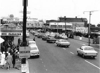 | Keywords: Papanui 1966.JPG en Looking towards Papanui Junction roundabout with vehicles on parade including several Police Cars circa 1967 Canterbury Museum Stan McKay or 1966 1967 PD-Art Papanui Streets in Christchurch Police automobiles in New Zealand Dry cleaning New Zealand in the 1960s Shops in Christchurch Historic road signs in New Zealand |