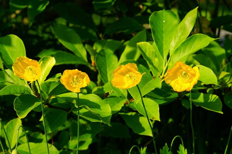 Keywords: papaveraceae poppy genus poppy klatschmohn flowering flower garden yellow flowers in bloom spring garden plant yellow early bloomer may flowers flora partial view close crop