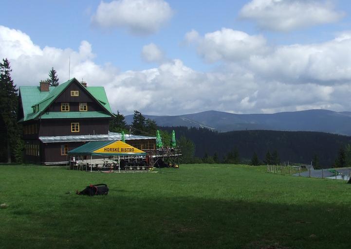 Keywords: Paprsek. mit.JPG pl Paprsek - górski schronisko turystyczne w Czechach w Sudetach Wschodnich w Górach Bialskich czes Rychlebské hory own Timaska 2008 09 01 Widok od strony północno zachodniej w tle pasmo górskie Wysoki Jesionik Góry Bialskie Sudety Wschodnie Cc-zero |