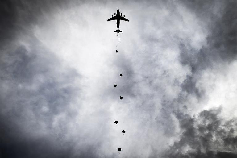 Keywords: parachute training parachuting jumping military airborne plane parachutists american sky forces paratroopers floating air canopy jumper