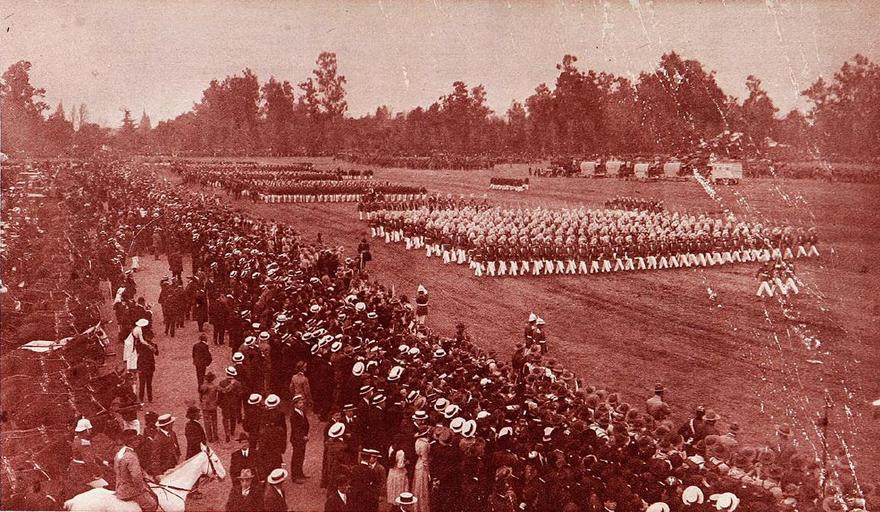 | Keywords: Parada Militar chilena en 1915.JPG es Parada Militar en el Parque Cousiño en 1915 Aspecto de las tropas durante el desfile de la Escuela Militar al pasar frente a las tribunas http //www memoriachilena cl/602/w3-article-124272 html author 1915 PD-old Día de las Glorias del Ejército de Chile |