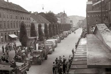 | Keywords: Parada motornih vozil na Partizanski cesti v Mariboru ob dnevu šoferjev 1956.jpg Parada motornih vozil na Partizanski cesti v Mariboru ob dnevu šoferjev 173262 1956-07-15 author PD-Slovenia 1956 in Slovenia Historical black and white photographs of Maribor Parades in Maribor Partizanska cesta Maribor |