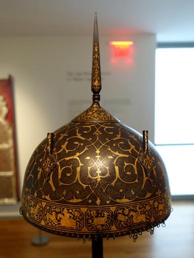 Keywords: Parade helmet, Iran, first half of 19th century, forged steel overlaid with gold - Aga Khan Museum - Toronto, Canada - DSC07027.jpg en Exhibit in the Aga Khan Museum - Toronto Canada This work is old enough so that it is in the public domain Photography was permitted in the museum without restriction 2015-10-06 12 51 23 own Daderot other versions PD-old-100 cc-zero Metalwork of Iran in the Aga Khan Museum Armour of Iran |
