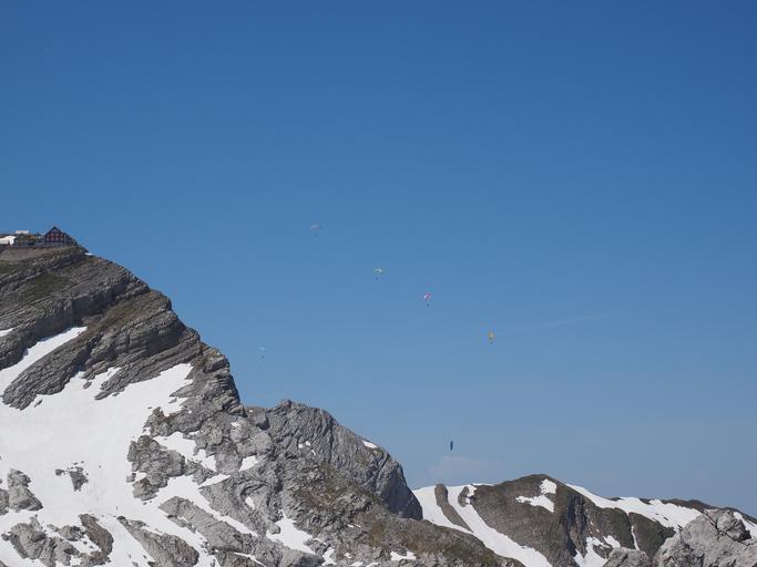 Keywords: paraglider mountain säntis mountains alpine paragliding fly mountain station