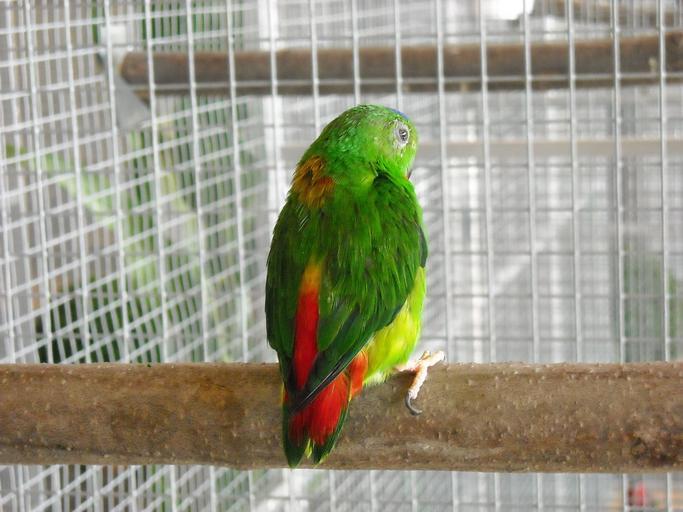 Keywords: parakeet small parrot bird pet cage colorful green feathers